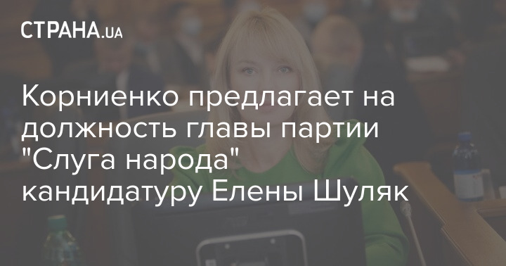 Александра Корниенко, который сложил с себя полномочия главы партии "Слуга народа", как и писала "Страна", предлагает назначить на свое место Елену Шуляк.