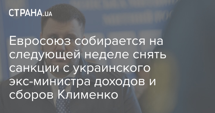 "ЕС намерен на следующей неделе исключить бывшего министра доходов и сборов Украины Александра Клименко из санкционного списка за растрату государственных средств", - сообщил журналист.
