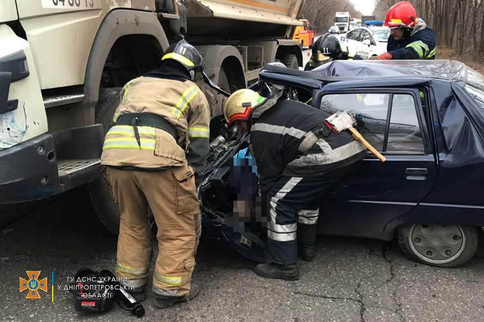 В Кривом Роге в результате столкновения грузовика и легковушки погиб мужчина. Фото: пресс-служба ГСЧС