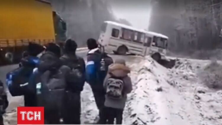 В Житомирской области в кювет слетел школьный автобус. Инцидент попал на видео, которое быстро разошлось по соцсетям.
