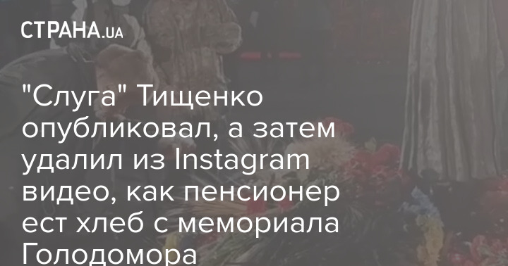 "Слуга" Тищенко опубликовал, а затем удалил из Instagram видео, как пенсионер ест хлеб с мемориала Голодомора