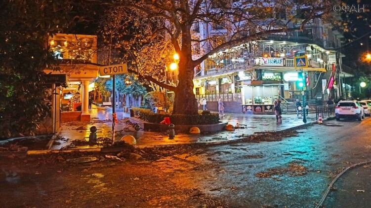 На улицах столицы Крыма, а также Ялты - упавшие деревья и оборванные провода. Шквальный ветер перемежается с проливным дождем.