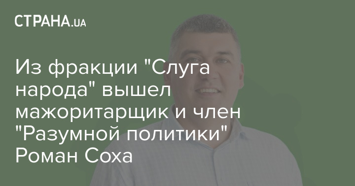 Из фракции "Слуги народа" вышел мажоритарщик и член недавно созданного межфракционного депутатского объединения "Разумная политики" Роман Соха.