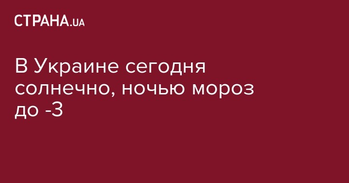 Во вторник, 18 октября, на всей территории Украины установится солнечная погода без осадков, при этом ночью во многих регионах температура воздуха опустится ниже нуля. Об этом говорит прогноз погоды от Укргидрометцентра.