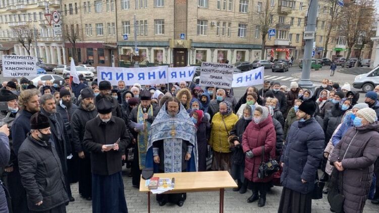 В пятницу, 3 декабря, в Виннице, где верующие УПЦ объявили войну "черным регистраторам", прошло молитвенное стояние возле здания областной администрации. Целью акции было привлечь внимание к "незаконной перерегистрации" религиозных общин УПЦ в ПЦУ.