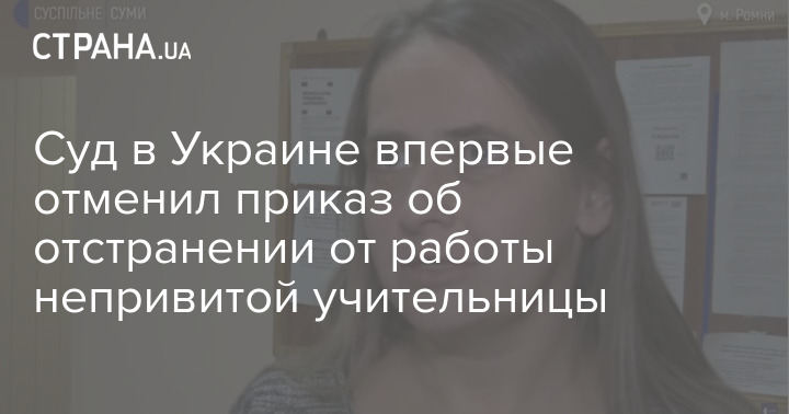 В Украине создан первый юридический прецедент об аннулировании отстранения от работы невакцинированного педагога. Роменский горрайонный суд Сумской области на заседании 6 декабря отменил приказ директора школы об отстранении от работы учительницы, которая не прививалась от коронавируса.