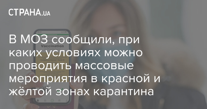 В Министерстве здравоохранения Украины рассказали о правилах проведения массовых мероприятий в "желтой" и в "красной" карантинных зонах.