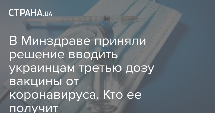 В Украине приняли решение о введении третьей дозы вакцины от коронавируса некоторым категориям населения. В частности, ее получат перенесшие трансплантацию и ВИЧ-инфицированные. Об этом сообщил главный санитарный врач страны Игорь Кузин в эфире "1+1".