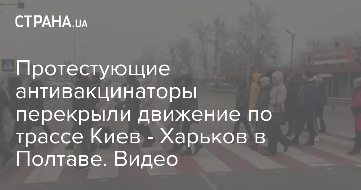 В Полтаве митингующие противники вакцинации перекрыли движение на трассе Киев - Харьков. Фото: "Скриншот из видео"
