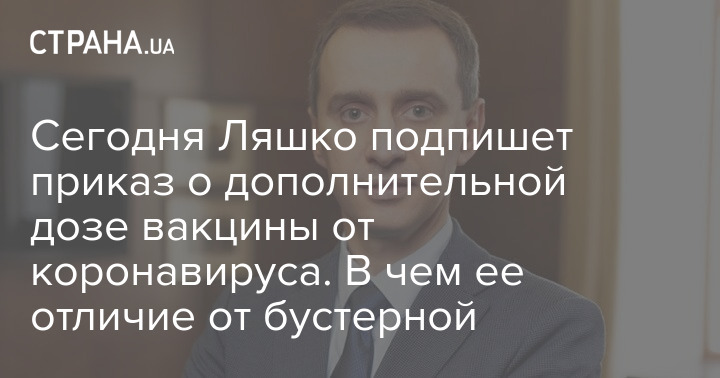 "Дополнительная доза - это доза, которая вводится с целью достижения лучшей защиты у лиц, которые по состоянию своего здоровья, имеют низкую эффективность вакцин по сравнению с эффективностью вакцины в общей популяции", - сказал Ляшко.