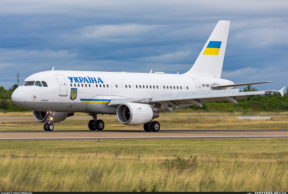 • Airbus A319-115, регистрационный номер UR-ABA, выпущен в 2007 году.