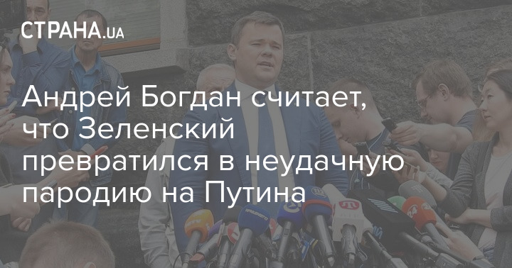 Бывший глава Офиса президента Украины Андрей Богдан, который считает поведение Зеленского в отношениях с Путиным дипломатической катастрофой, заявил, что президент Украины Владимир Зеленский хочет быть похожим на Путина, но в итоге стал лишь пародией на президента России.