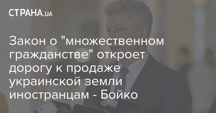 Сопредседатель партии "Оппозиционная платформа - За жизнь" Юрий Бойко заявил, что законопроект, который позволяет украинцам иметь несколько гражданств, нужно отложить. По мнению политика, закон содержит содержит нормы, которые нанесут вред стране.