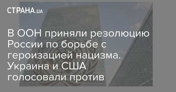 Генеральная ассамблея Организации Объединенных Наций (ООН) приняла российскую резолюцию по борьбе с героизацией нацизма.