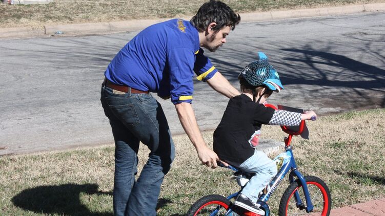 Якобы слепого застали за обучением дочери езде на велосипеде. Фото: Фликр