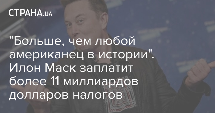 Американский бизнесмен Илон Маск, который стал человеком года по версии Time, заявил, что в текущем году заплатит свыше 11 млрд долларов налогов.