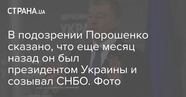 В первом абзаце на 22-ой странице подозрения написано, что буквально месяц назад, 3 ноября 2021 года, Петр Порошенко мало того, что был действующим президентом, так еще и созывал Совет национальной безопасности и обороны.