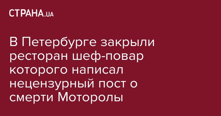 В Петербурге закрыли ресторан шеф-повар которого написал нецензурный пост о смерти Моторолы