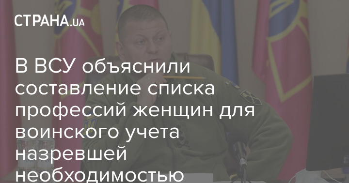 "Назрела необходимость создания такого документа, который позволял бы нам, военным, видеть женщин, которых можно использовать при защите нашего государства", - добавил Залужный.