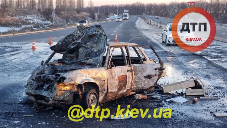 В воскресенье, 26 декабря, под Киевом произошло серьезное ДТП с последующим возгоранием автомобиля.