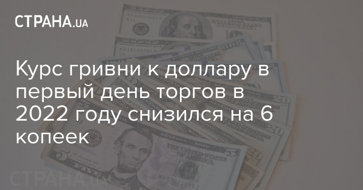 Курс гривни к доллару в первый день торгов в 2022 году снизился на 6 копеек