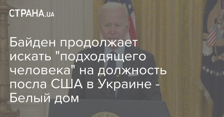 Президент США Джо Байден продолжает искать "подходящего человека" на должность нового американского посла в Украине. Об этом заявила на брифинге во вторник пресс-секретарь Белого дома Джен Псаки, сообщается на сайте Белого дома.