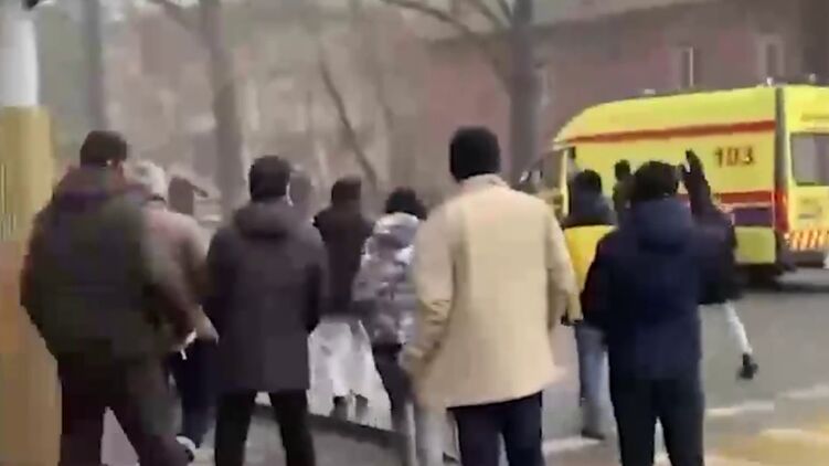 В охваченном протестами Алматы толпа атаковала автомобиль скорой помощи. Участники протестов забросали неотложку камнями, чтоб она не смогла забрать раненых силовиков под акиматом (мэрией) города.