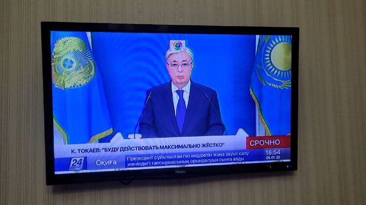 Токаев в обращении в нации сказал, что "с сегодняшнего дня председатель Совета Безопасности намерен действовать жёстко". Он также пообещал находиться в столице, "что бы ни было".