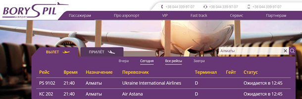 После информации о захвате аэропорта в Алматы на табло киевского международного аэропорта "Борисполь" появилась информация о переносе рейсов.