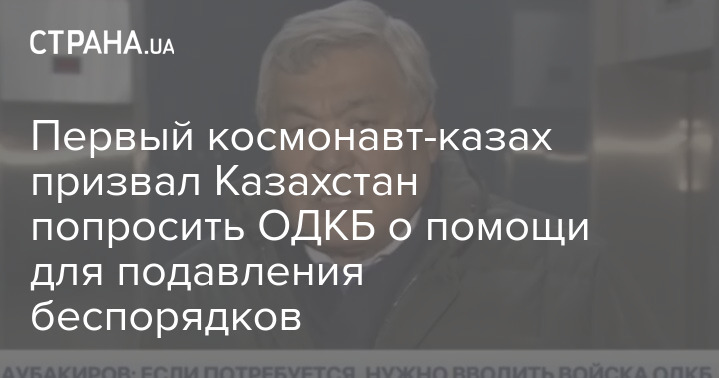 Первый космонавт-казах Токтар Аубакиров заявил, что Казахстану нужно обратиться за помощью к ОДКБ (Организация Договора о коллективной безопасности, куда входят Россия, Армения, Белоруссия, Казахстан, Киргизия и Таджикистан - Ред.), чтобы справиться с беспорядками в стране.