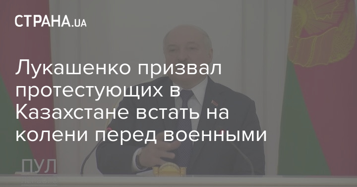 Президент Беларуси Александр Лукашенко обратился к протестующим в Казахстане и призвал их "встать на колени перед военными" и начать переговоры с президентом Касымом-Жомартом Токаевым.