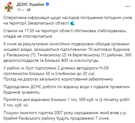 Два дня назад, 5 января, в 20:35 в ГСЧС Закарпатья поступило сообщение о том, что два человека, 1996 и 2007 годов рождения, двигаясь по горной дороге на гужевом транспорте, съехали в реку Крайня в Раховском районе. В результате чего несовершеннолетний парень оказался в воде и пропал. С тех пор спасатели ищут подростка, но пока что поиски не дали результатов.