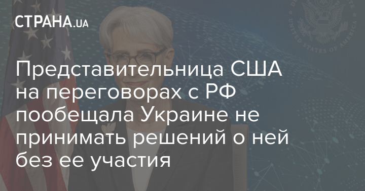 Представительница США на переговорах с РФ пообещала Украине не принимать решений о ней без ее участия