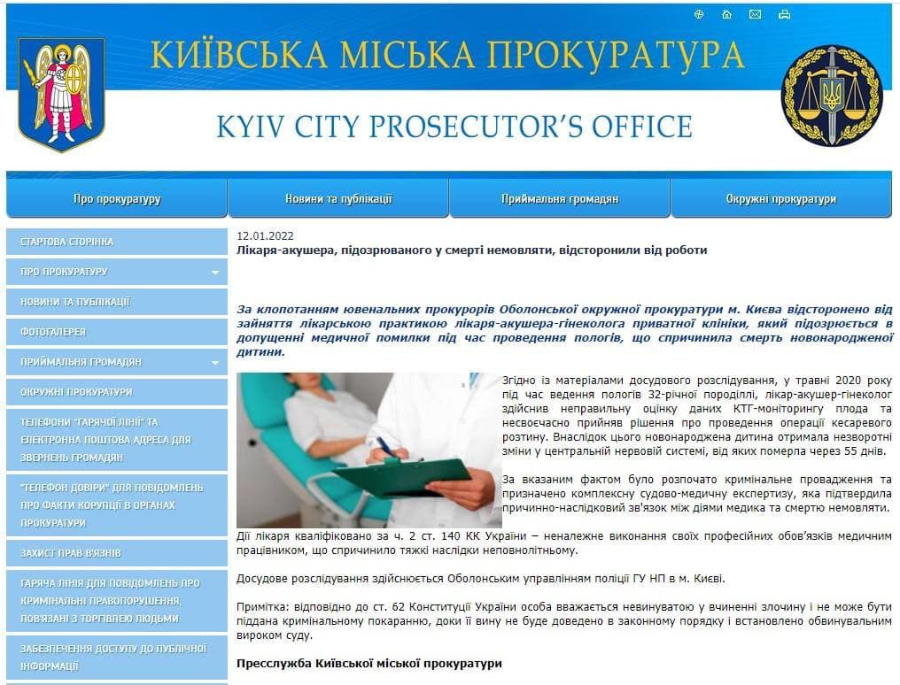 Акушер-гинеколог Николай Коваленко из частного столичного роддома "Лелека" отстранен от работы на время досудебного расследования по делу о смерти новорожденной девочки Веры Косоговой.
