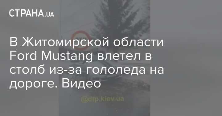 В Житомирской области Ford Mustang влетел в столб из-за гололеда на дороге. Видео
