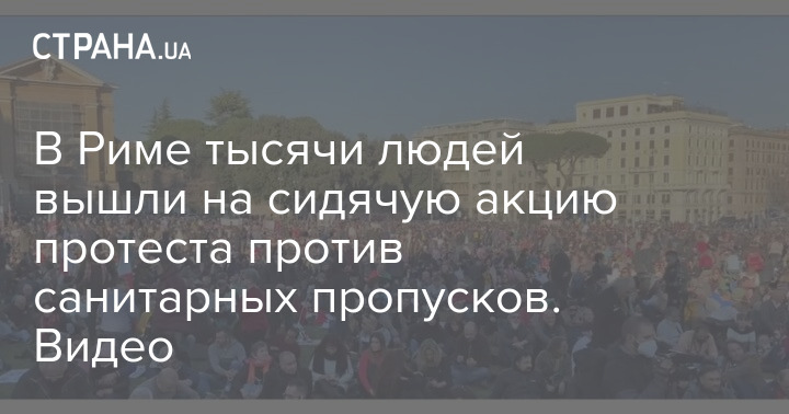 В Риме тысячи людей вышли на сидячую акцию протеста против санитарных пропусков. Видео