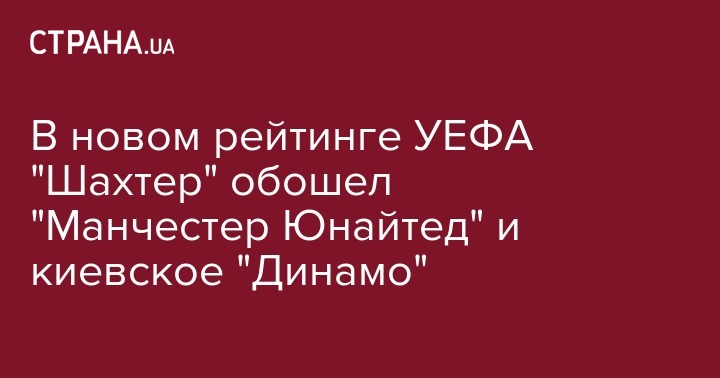 Донецкий "Шахтер" в новом рейтинге занял 18 место, опередив "Манчестер Юнайтед"(22) и киевское "Динамо" (23)