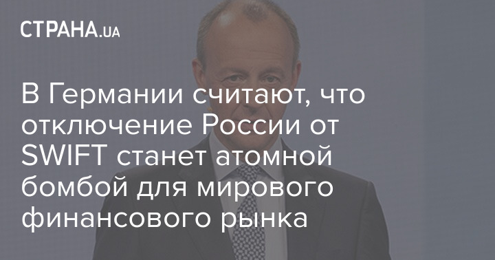 Будущий председатель немецкого Христианско-демократического союза (ХДС) Фридрих Мерц заявил, что ограничение доступа России к SWIFT (международная межбанковская система) станет "атомной бомбой" для кредитных рынков.