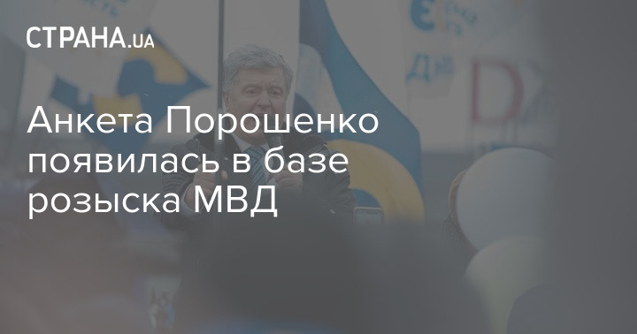 Анкета бывшего президента Украины, лидера "Европейской солидарности" Петра Порошенко появилась на сайте розыска Министерства внутренних дел Украины. Он значится во внутриукраинском розыске.
