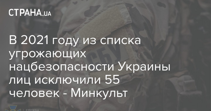 По данным ведомства культуры и информационной политики, в 2021 году по представлению Службы безопасности Украины (СБУ) в перечень лиц, которые создают угрозу нацбезопасности Украины, было внесено 103 человека, в тоже время из него исключили 55 человек.
