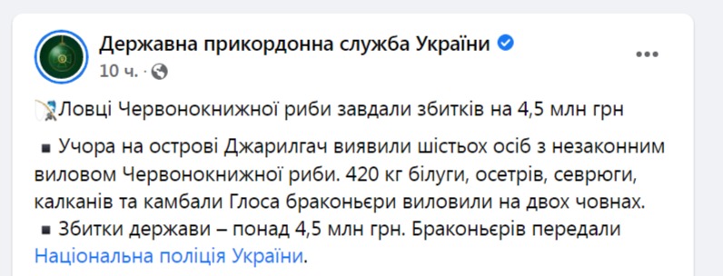 Ущерб государства составил более 4,5 млн грн. Браконьеры были переданы Национальной полиции Украины.