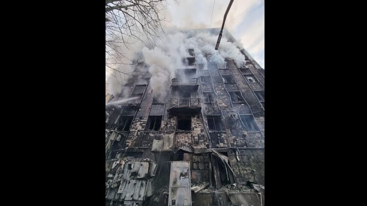 Здание на момент начала ликвидации огня. Источник: facebook.com/MNS.GOV.UA