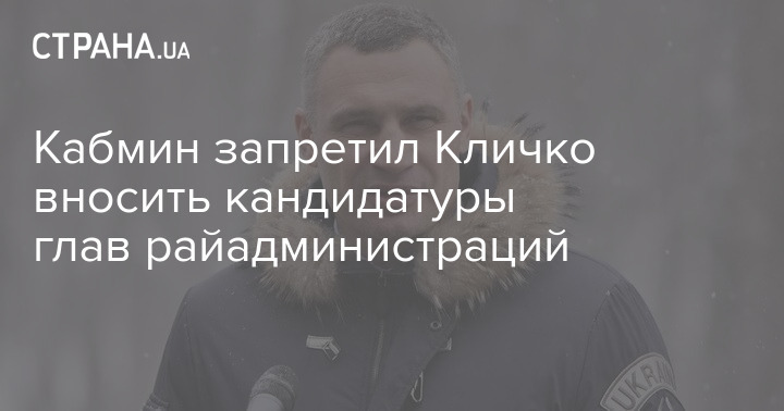 Кабинет министров запретил председателю Киевской городской государственной администрации Виталию Кличко вносить кандидатуры глав районных администраций на назначение президентом Владимиром Зеленским.