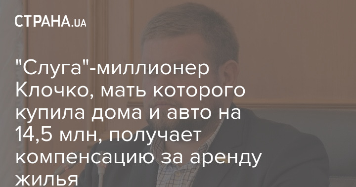 Народный депутат от "Слуги народа" Андрей Клочко каждый месяц получает из госбюджета 20 тысяч гривен компенсации на аренду жилья в Киеве, в то время, как его мама за время его депутатства купила недвижимость и машину на 14,5 миллионов, а сам народный избранник с супругой являются официальными миллионерами.