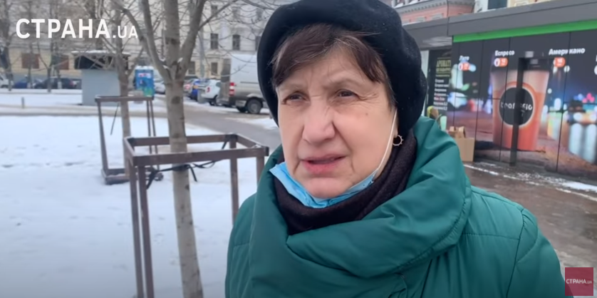 "Я не паникую. Немного есть в душе такая тревога какая-то. А надеюсь, что всё будет хорошо. Пусть не нападают на нас. Пусть все живут мирно, дружно. Там наши братья и сёстры в России. Ну куда же, нельзя же такое делать! Нужно же как-то договариваться. Я не знаю, президент говорит, что всё будет у нас хорошо, не паникуйте. Другие говорят, что у нас уже хлеба и муки нет. Так, а куда же мы всё подевали? У нас же сколько выращивается всего. Куда же оно всё подевалось?", - говорит "Стране" еще одна киевлянка.