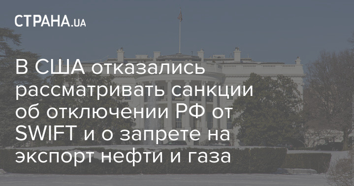 В США отказались рассматривать санкции об отключении РФ от SWIFT и о запрете на экспорт нефти и газа
