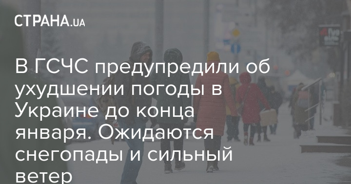 В Государственной службе Украины по чрезвычайным ситуациям (ГСЧС) заявили о том, что в ближайшие дни погода в Украине значительно ухудшится. До конца января в стране ожидаются снегопады и сильный ветер.