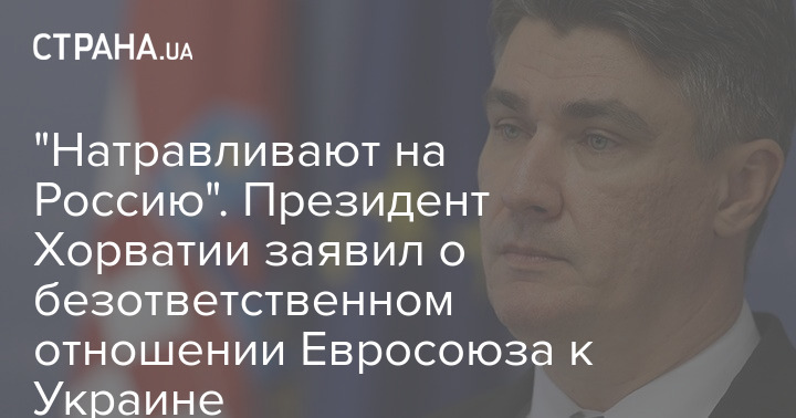 Президент Хорватии Зоран Миланович, который назвал премьера своей страны "украинским агентом", заявил, что политики из Европы безответственно относятся к Украине и натравливают ее на Россию.