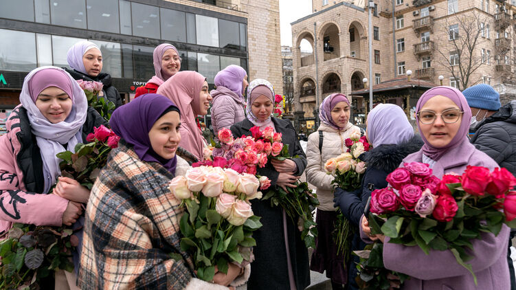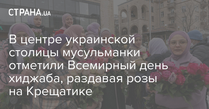 В центре украинской столицы мусульманки отметили Всемирный день хиджаба, раздавая розы на Крещатике