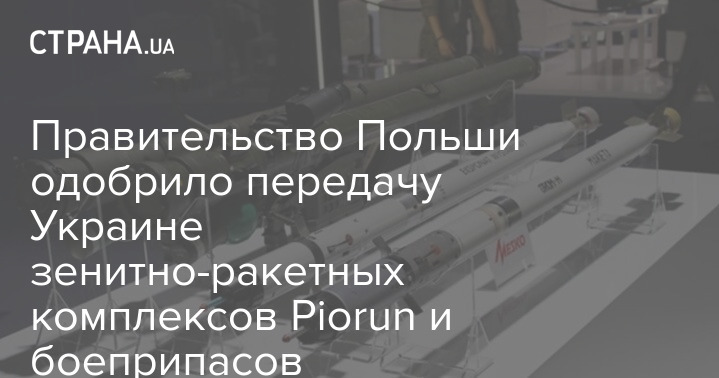 Правительство Польши одобрило передачу Украине переносных зенитно-ракетных комплексов Piorun и боеприпасов, которую ранее анонсировал премьер-министр республики Матеуш Моравецкий